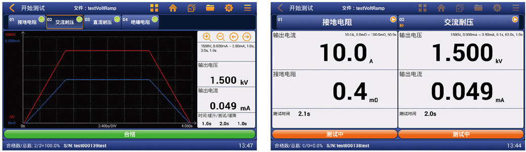 系列产品具有宽泛的量程选择,交流耐压5kV/100mA、直流耐压6kV/20mA、绝缘电阻6kV/100GΩ、交流接地64A/600mΩ、直流接地60A/600mΩ(后面板插卡输出)、多通道切换卡。