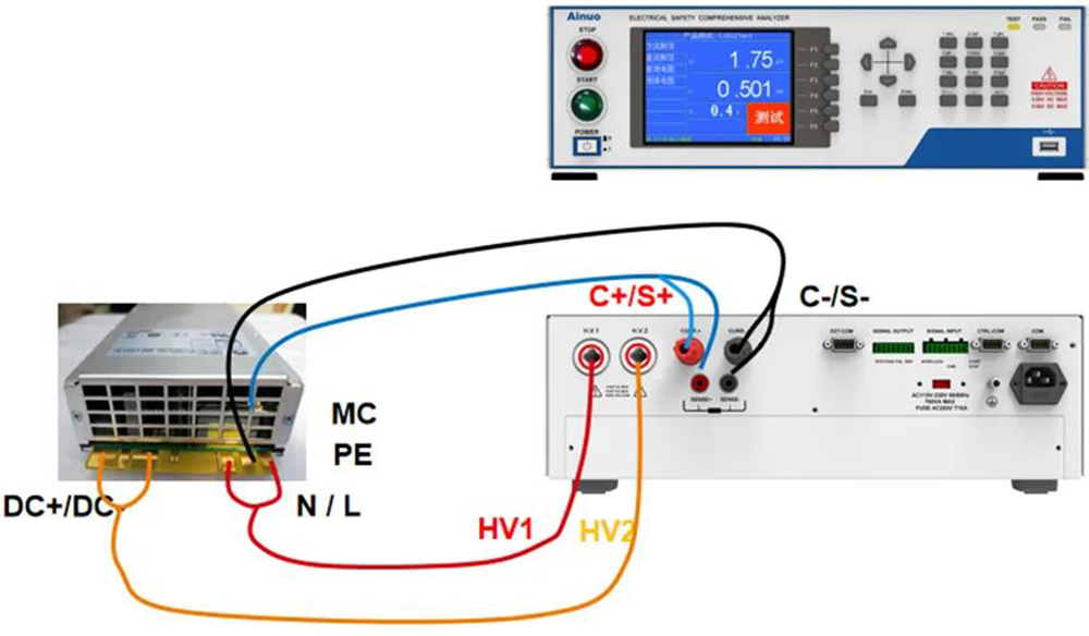 2)HV2(负高压)--- C-/S- (0V),输出DC+/DC- ---PE之间耐压U2测试,1s;